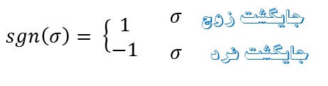 جایگشت زوج و فرد: فرض کنیم $ \sigma $ یک جایگشت بر روی مجموعه S باشد. جایگشت $ \sigma $، را جایگشت زوج گویند، هرگاه تعداد کل انعکاسهای جایگشت زوج باشد و جایگشت $\sigma $، را جایگشت فرد میگویند، هرگاه تعداد کل انعکاسهای آن فرد باشد. با توجه به زوج و فرد بودن یک جایگشت میتوانیم تابع زیر را تعریف کنیم: