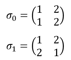نکته: مجموعه همه جایگشتهای یک مجموعه n عضوی را با نماد $ S_n $ نشان میدهیم، پس $S_2 = \{ \sigma_0 , \sigma_1 \}$ خواهد شد. دقت کنید که عنصر $\sigma_0$ را عضو همانی مجموعه $S_2$ گویند و با نماد id نمایش میدهند.