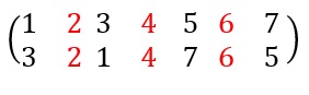 همانطور که مشاهده میکنید، در جایگشت بالا مجموعه S شامل اعداد ۱ تا ۷ میباشد. با توجه به این نکته، این جایگشت تمامی اعدادی را که از مجموعه S در بر نمیگیرد به خودشان تصویر میکند. بنابراین داریم: