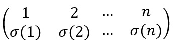 دو سویی بودن این تابع نشان میدهد که هر عضو از مجموعه S، دقیقا به یک عضو از مجموعه S تصویر خواهد شد. در واقع اگر فرض کنید $S=\{ 1 , 2 , ... , n \}$ باشد، در اینصورت یک جایگشت بر روی مجموعه S را میتوان به صورت زیر میتوان نمایش داد: