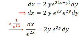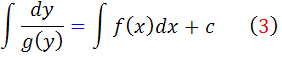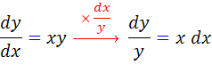 که در اين حالت ِ معادله، متغير هاي x و y ، از يکديگر جدا شده اند. يعني عبارات ِ شامل x در يک سمت علامت تساوي و عبارات شامل y در سمت ديگر آن آمده اند. به همين دليل است که اين معادلات را معادلات جداپذير مي گويند.