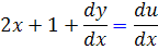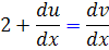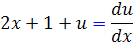 اکنون در اين معادله جديد، تغيير متغير 2x + 1 + u = v را انتخاب مي کنيم و از آن نسبت به x مشتق مي گيريم :