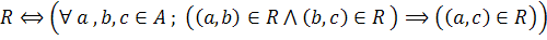 گوييم رابطهی R روي مجموعهاي مانند A « متعدي » است اگر و تنها اگر براي هر a و b و c از A ، اگر