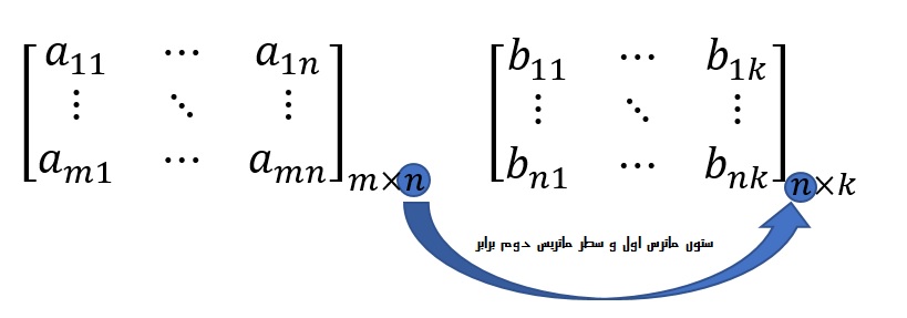 نکته ۱. زمانی میتوانید ماتریس A را در ماتریس B ضرب کنید که تعداد ستونهای ماتریس A با تعداد سطرهای ماتریس B برابر باشد.