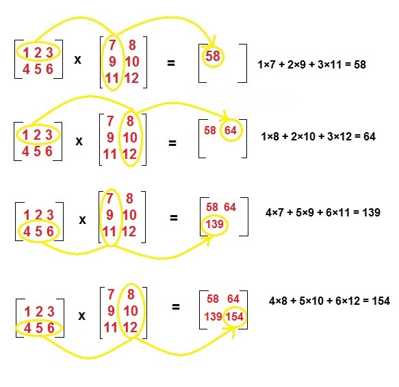 با توجه به تعریف بالا برای ضرب ماتریسها داریم:
