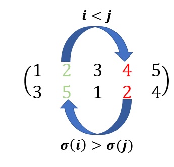 همانطور که در تصویر بالا مشاهده میکنید، ۲ کوچکتر از ۴ است، ولی مقدار $\sigma(2)$ بزرگتر از $\sigma(4)$ میباشد، در نتیجه یک انعکاس جایگشت است.