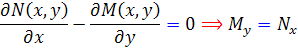 کامل باشد، پس تابعي مانند f وجود دارد به طوري که شرايط برقرارند. از حساب ديفرانسيل و انتگرال به ياد داريم که چون M و N پيوسته اند، مشتقات جزئي مرتبه دوم زير با هم برابرند :