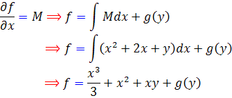 که تابع زير انتگرال، بايد تابعي از y باشد، يعني بايد مشتق آن نسبت به x صفر شود. پس :