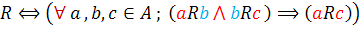 گوييم رابطهی R روي مجموعهاي مانند A « متعدي » است اگر و تنها اگر براي هر a و b و c از A ، اگر