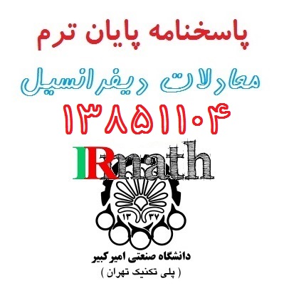 مطالعه آنلاین نمونه سوال پایان ترم معادلات دیفرانسیل دانشگاه صنعتی امیرکبیر (پلی تکنیک) تهران مورخ 13851104 - همین آزمون