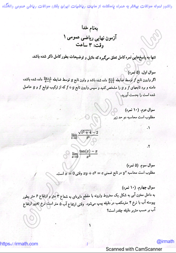 لیست سایر نمونه سوالات ریاضی عمومی